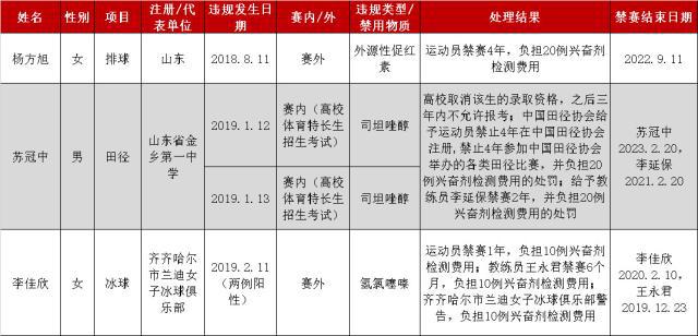 通報顯示,楊方旭是在去年8月11日賽外興奮劑檢測中查出外源性促紅素呈陽性,被處以禁賽四年,負擔20例興奮劑檢測費用的處罰。