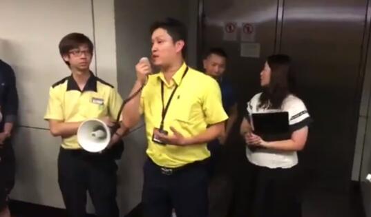 但隨後尷尬的一幕發生了,阻礙了地鐵站正常運營的示威者開始齊聲大喊:“開冷氣!開冷氣!開冷氣!開冷氣……”