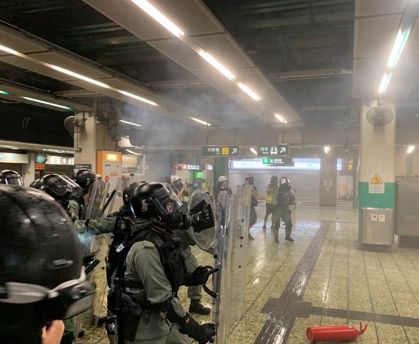 由於暴徒使用滅火器對着警方發射的橡膠彈噴射,導致地鐵站內煙霧瀰漫。不過,部分港媒及英國廣播公司(BBC)等媒體將此報道為,“警方在一封閉車站內使用催淚瓦斯”。
