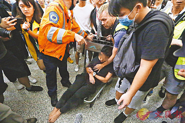 據香港文匯報8月14日報道,長居香港的英國籍自由撰稿人理查德·斯科特福德(Richard Scotford)多次試圖保護其中一名被打的旅客,但周圍僅兩三位香港人(注:兩位是機管局人員)合力營救,當救出該名旅客時,他已昏迷不醒。