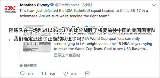 尷尬!美國男籃夢之隊訓練賽不敵陪練隊