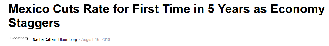 據彭博社16日消息,當地時間8月15日,墨西哥央行表示,將把基準利率下調25個基點至8%,理由是全球經濟活動放緩以及國際經貿局勢緊張。這是墨西哥央行5年來首次降息。