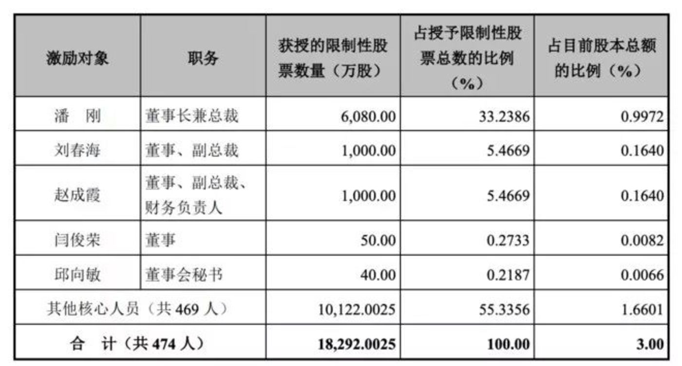 8月6日,伊利公佈了限制性股票激勵計劃:向激勵對象授予總股本3%的股票,其中董事長潘剛一人獨得33.2%,其餘副總裁、CFO以及董秘、董事等四人分得11.4%,高管團隊共分得44.7%,其餘469人分得剩餘的55.3%。