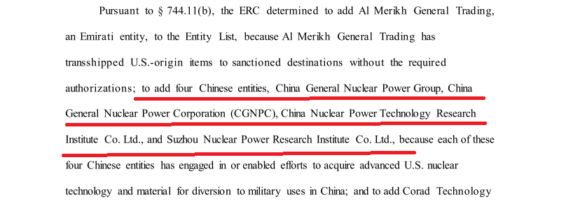美東時間2019年8月14日,美國商務部下的產業與安全局(BIS)將中廣核電力股份有限公司、中廣核集團、中廣核研究院有限公司、蘇州熱工研究院有限公司納入“實體清單”。