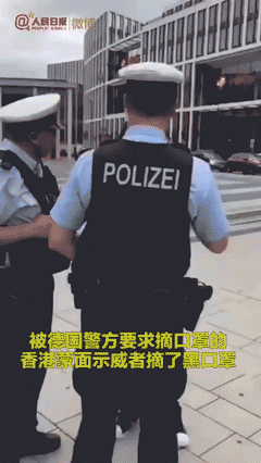 據報道,8月17日,有留學生和海外僑胞在德國科隆市自發舉行“愛國護港”集會,在現場,有帶着面罩的香港示威者,德國警察要求蒙面者摘除面罩。