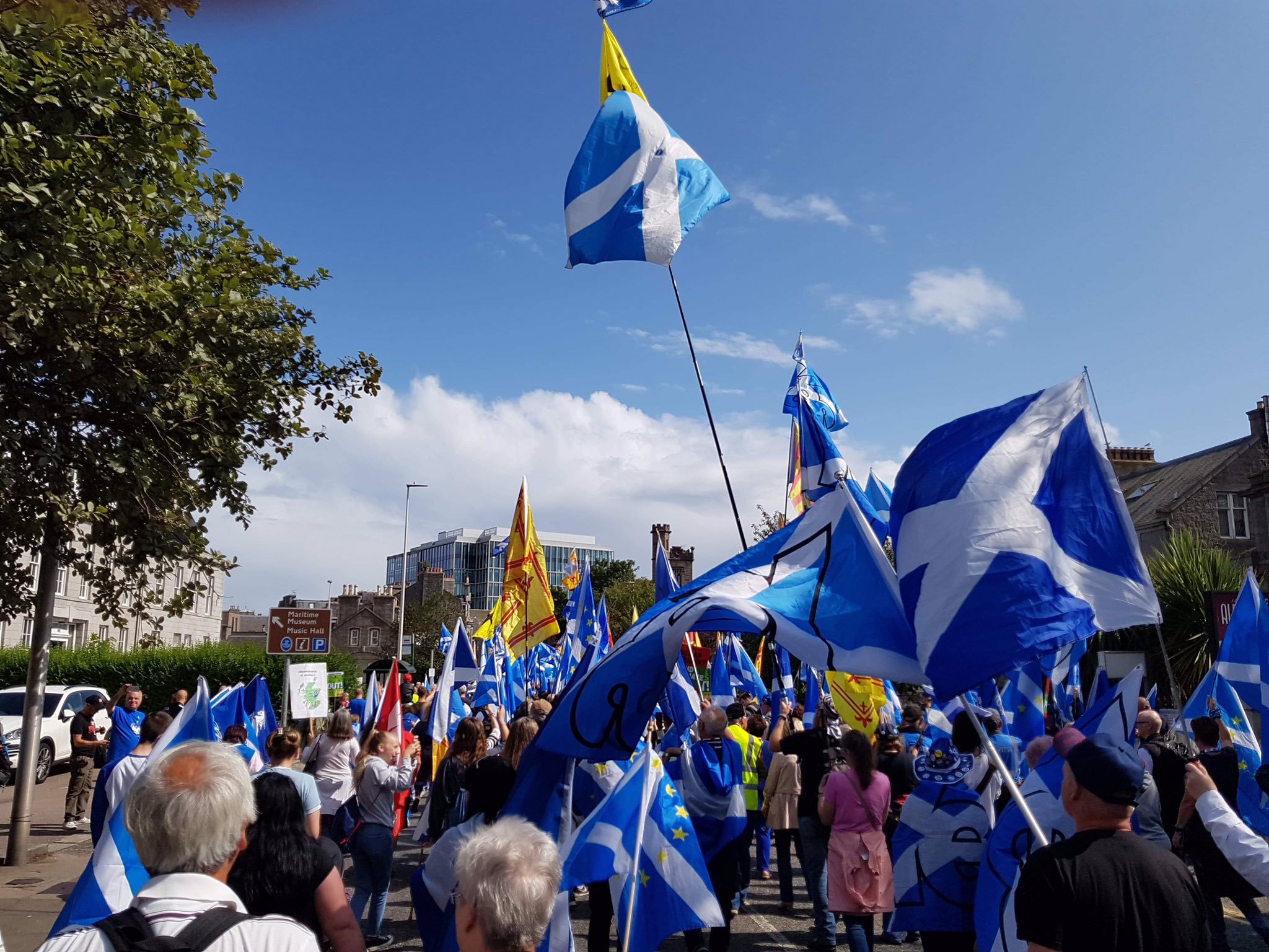 隨着民調中支持獨立的蘇格蘭人首次超過半數,成千上萬的蘇格蘭民眾在8月17日下午走上阿伯丁街頭,呼籲蘇格蘭脱離英國,獲得獨立。