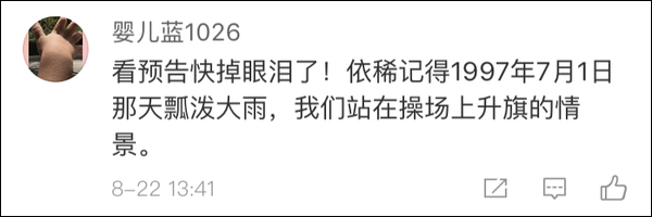 8月22日,新中國成立70週年獻禮片《我和我的祖國》之《迴歸》釋出預告,重温香港迴歸歷史瞬間,感動眾多網友。