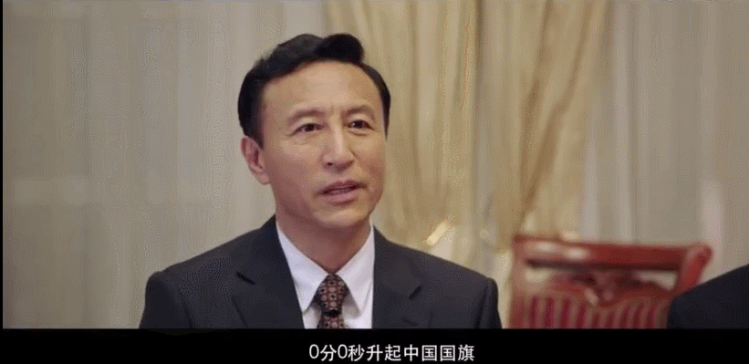 當英國代表對降旗時間提出異議時,王洛勇飾演的中方代表沒有讓步,並堅定地表示:“0分0秒升起中國國旗,這是我們的底線”。