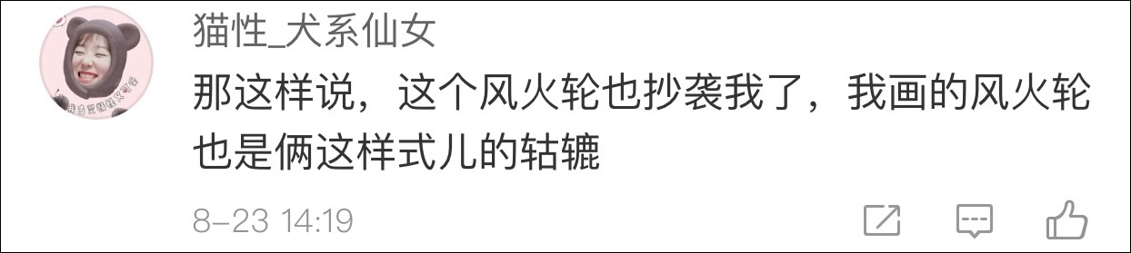 有網友調侃,要真這麼説的話,“我懷疑電影中的風火輪抄襲了我的,因為它畫的風火輪和我畫的一樣”;