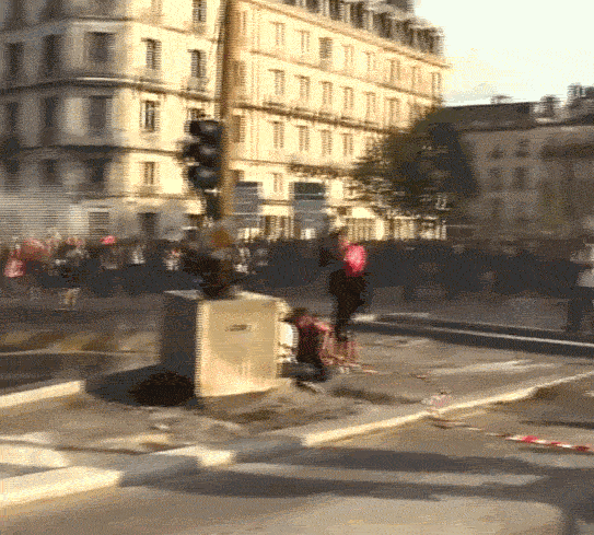 社交媒體視頻顯示,在法國各地方興未艾、辨識度極高的“黃背心”運動成員也出現在遊行人羣中。這是他們連續第41周抗議總統馬克龍。