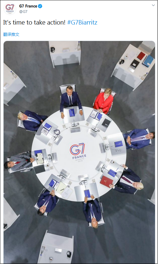 25日,G7官方推特放出一張包括圖斯克在內的領導人抬頭看天的圖片,並配文:是時候採取行動了!