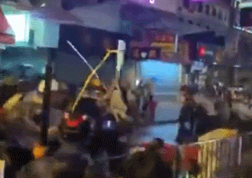 據香港東網報道,昨晚8時,港警衝鋒隊在抵達眾安街時被大批示威者包圍,有人大肆破壞警車,打爛玻璃窗,又有大批示威者持長矛木棍雨傘等追打在場警員。