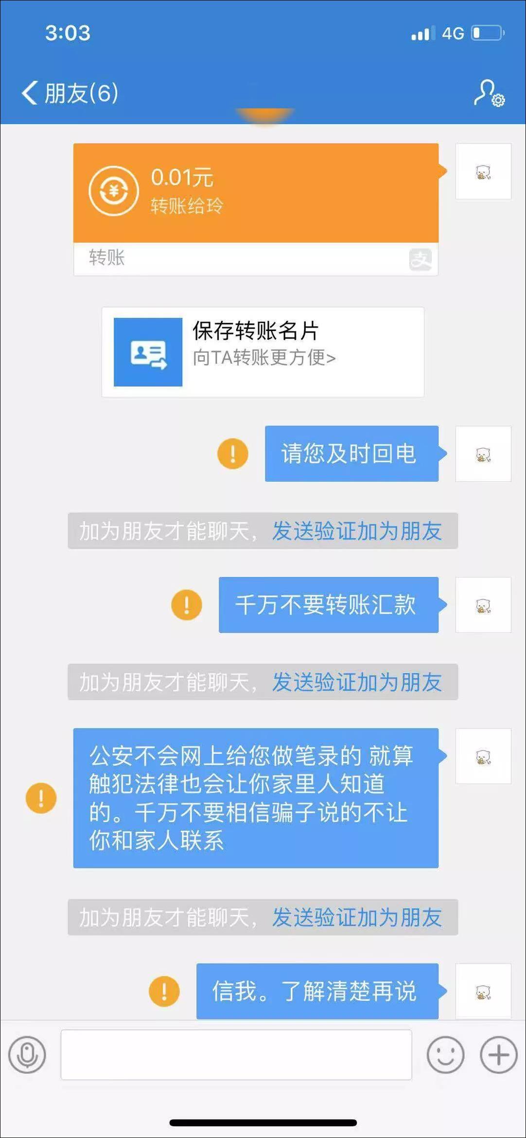 “收到請回復!”“請您及時回電!”“剛剛與你聯繫自稱公安局的人是騙子。不要轉賬匯款!”“自稱公檢法給你做筆錄的是騙子!”“我是大興公安分局反詐中心的,您手機被騙子呼轉,請儘快給我回電!”……