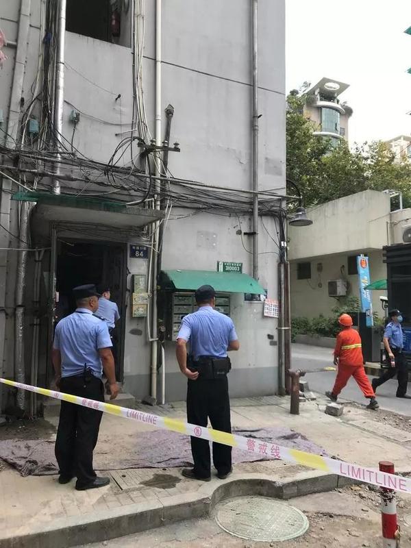 記者下樓的時候,發現32幢樓下已經拉起了警戒線。