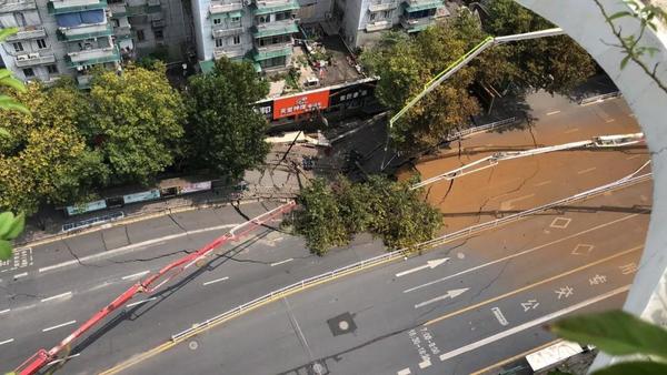 建國北路公交車站對面有家花店。花店老闆説,大概11點多,路面開始塌陷,也沒有聲音,當時有很大的黃色的煙。立馬就有工作人員告訴他們,撤離到體育場路警戒線之外去,把門窗關好。