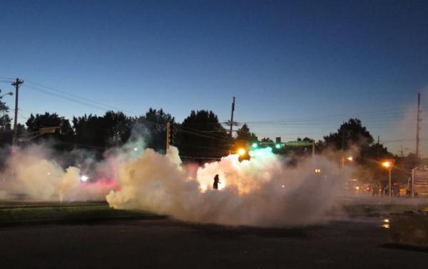 被催淚彈包裹的弗格森示威者(Toby Harnden)