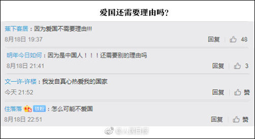 問題一出,很多網友笑了:愛國還需要理由?