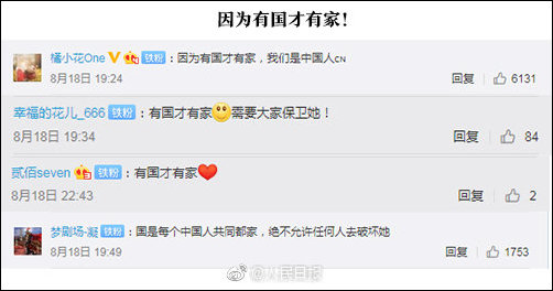 在何君堯參與的#你愛上祖國的理由#話題裏,也能看到不少類似回答。