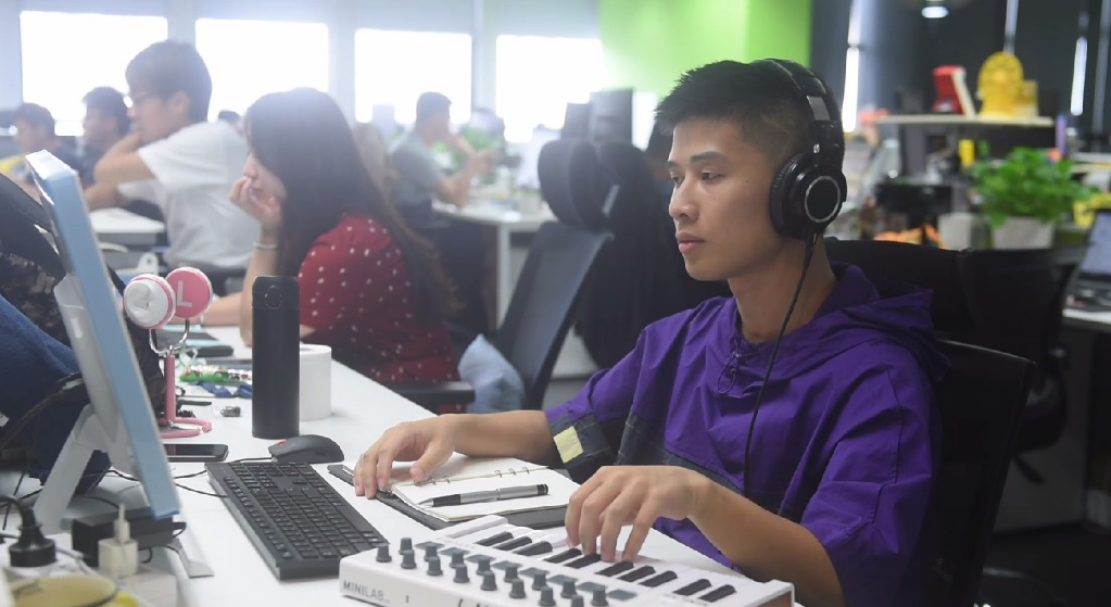 位於廣州平雲廣場大廈12層,27歲的李東勇坐在電腦前,帶着耳機,正全神貫注的看着電腦屏幕,時而閉目聆聽陷入沉思,時而手指輕敲鍵盤。今年3月,李東勇正式參與到唱鴨的開發。“將樂器從線下搬到線上,讓沒學過樂器的人也能享受一邊彈琴一邊唱歌的樂趣”這是李東勇對自己工作內容和意義的總結。