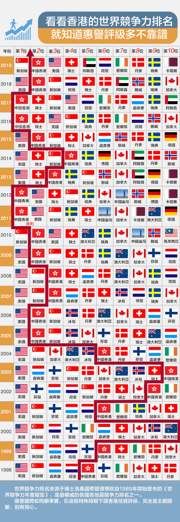 **這樣的主觀臆斷,既漠視歷史,也無視現實,毫無理據可言。**迴歸以後,香港法治指數全球排名從60多位大幅躍升到第16位,已超過美國,在瑞士洛桑國際管理發展學院發佈的《世界競爭力年報》中,排名已穩步升至全球數一數二。以“一國兩制”為基石,香港國際競爭力非但沒減弱,反而越來越強。惠譽怎麼不評評這個理?