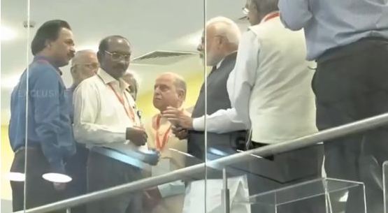 科學家們聚集在莫迪周圍。莫迪讓他們勇敢起來,繼續完成其他任務 《印度時報》視頻截圖