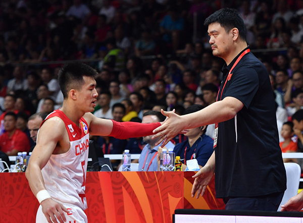 開場,姚明就和每一位教練組成員、每一位出場隊員擊掌,當全隊圍成一圈大聲喊出“中國隊加油”時,姚明將手握成了拳頭,輕輕地搭在周琦的肩膀上。
