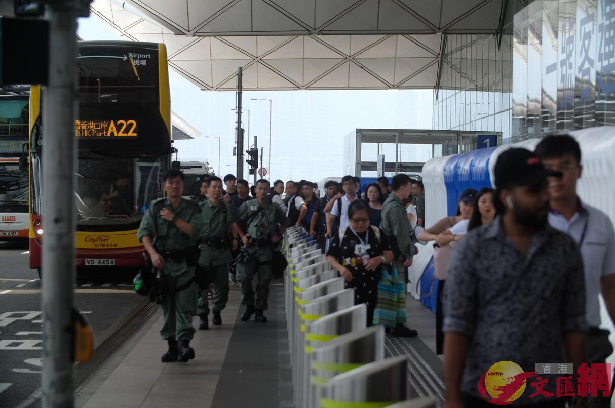 綜合香港文匯報、東網、無線新聞等港媒報道,7日警方出動大批警察和水炮車戒備。 在機場一號客運大樓,大批警察於多個出入口及大樓內駐守,旅客要有登機證和旅遊證件才可進入。