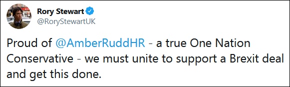 同樣被約翰遜開除的前國際發展大臣斯圖爾特也為拉德感到驕傲,他説這才是一個真正的以國家為重的保守黨人,他還呼籲保守黨人們團結起來,為達成一項脱歐協定而努力。