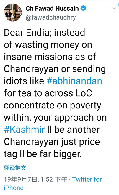 而在另一條推文中,他還説,新德里方面不應該把錢浪費在月球任務上,而應該專注於解決貧困問題。