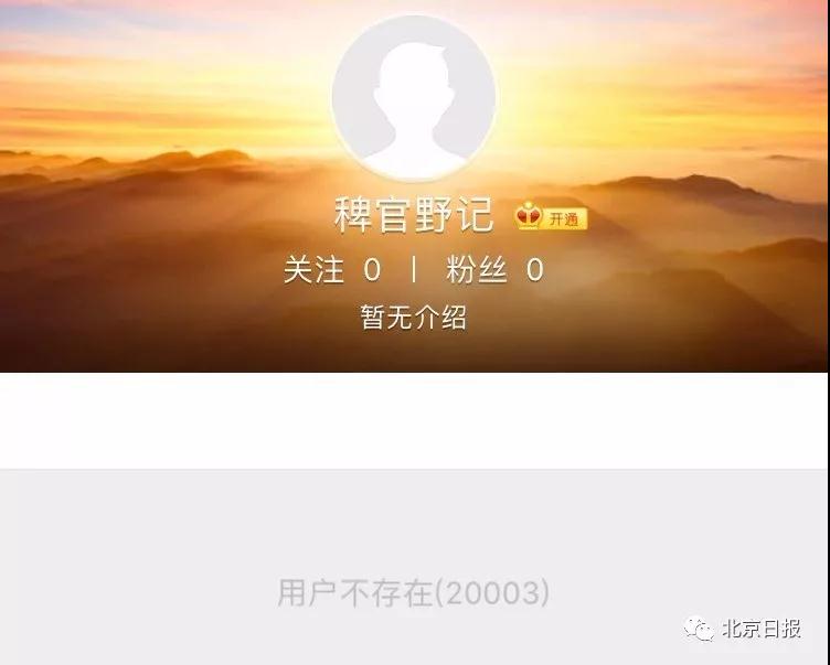 北京日報記者(ID:Beijing_Daily)注意到,目前@稗官野記 的賬號內容已被清空,微博搜索也查無此號。