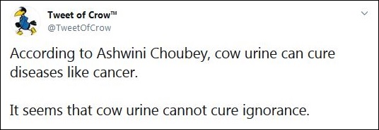 上週末(9月8日),印度衞生部長喬貝語出驚人,聲稱牛尿可以用來製藥,並治療癌症。