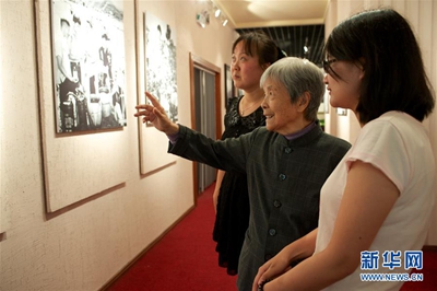 2013年5月21日,龔全珍(中)在江西萍鄉市蓮花縣革命烈士紀念館向人們講述丈夫甘祖昌將軍的故事。新華社記者 胡晨歡 攝