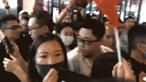 當時,一名身穿紅衫的男子與在場示威者爭執,示威者沿途高呼“返大陸,返大陸”,隨後多名商場保安護送紅衫男子離開,男子撤離時一度跌倒地上。