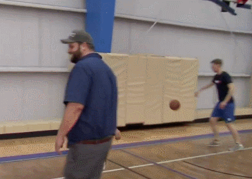 接着,他表演起兩人單挑的場面。“特朗普,我的天……他肯定會呆站在場上,就像是‘呃……呃……’,而我會各種得分,左側得分、右側得分、跳投得分……”