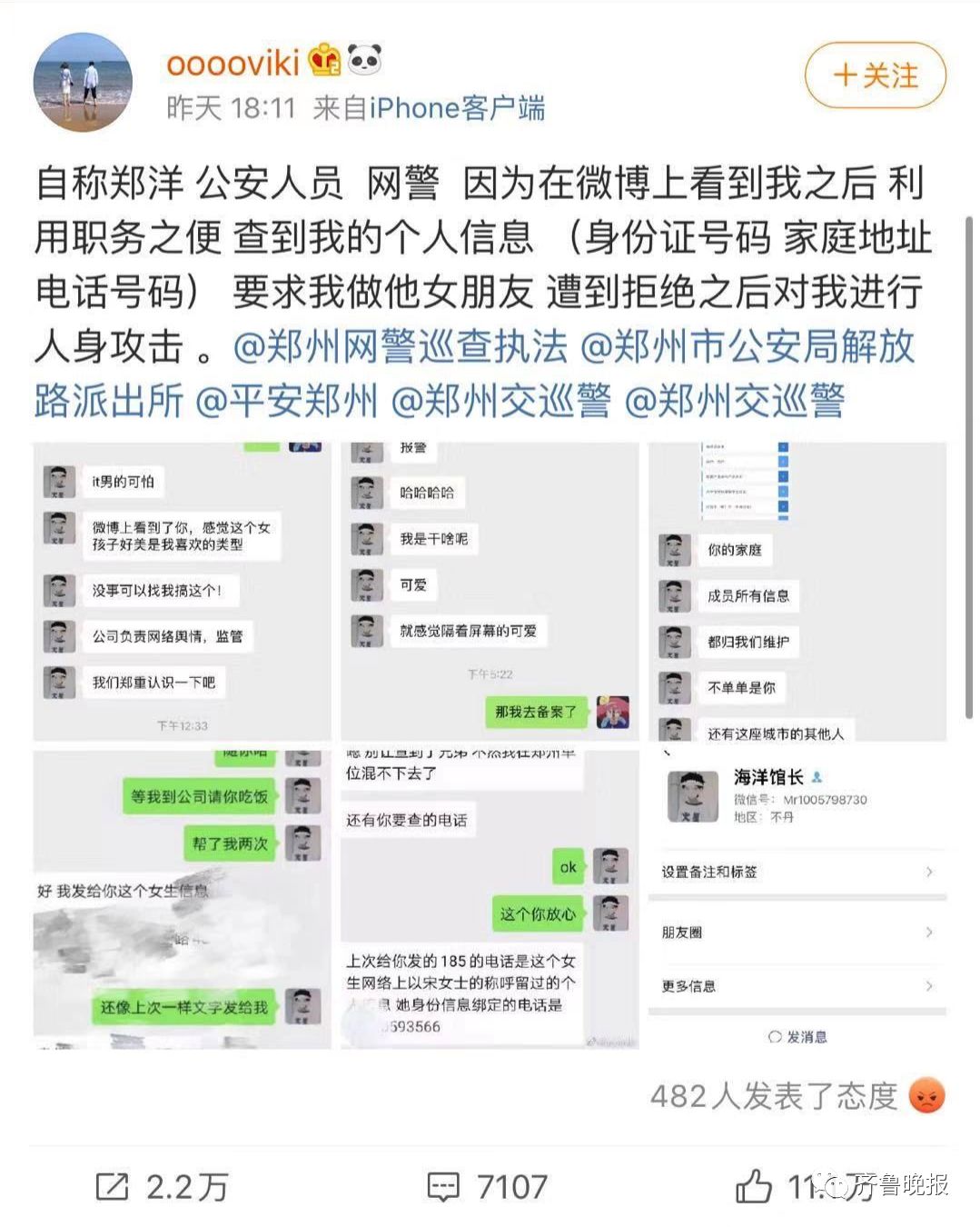 “微博網警”查女網友個人信息求交往?鄭州警方回應