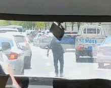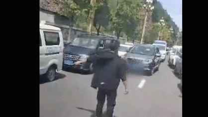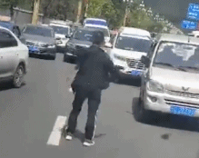 緊急時刻,一名身着黑色運動服的小夥衝進車道,跑前跑後,為救護車疏理開一條生命線。