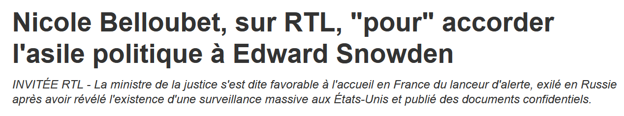 一天後,法國公共電台公佈一則採訪片段:斯諾登稱,希望法國政府能夠同意自己的政治避難申請,在法國尋求庇護。
