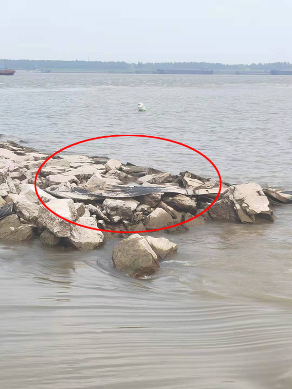 該負責人推測,這塊塑料布可能是長江上游發洪水時從上游漂下來的,“(應該)是半潛狀態漂下來的,掛在了石頭上面。”