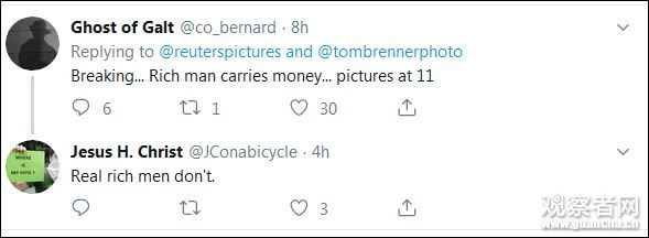 儘管褲兜裏塞個幾十美元再正常不過了,但是在特朗普這位“愛錢”的前地產大亨身上,難免引起一陣討論。
