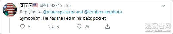 有人表示,這好像象徵着“美聯儲在他的屁股口袋裏”。