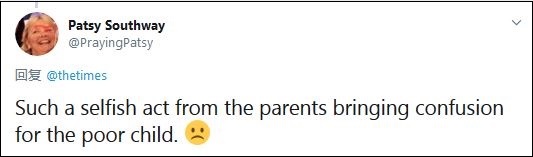 一名網友表示,對任何人來説,剛出生的幾年對他們的社交發展至關重要,在託兒所和學校這樣的環境中,人們對“他們”(指中立性別孩子)反應不一,如果他們被視為異類,那麼可能會對“他們”產生不利影響。可憐的孩子。