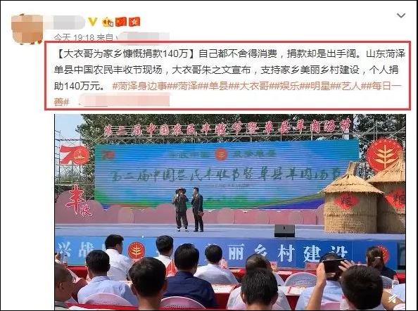 即便是在成名之後,大衣哥朱之文依舊保持着農民的本色,沒有演出的時候依舊是忙活家裏的農活,穿着打扮上也是十分樸素。然而如此樸素的大衣哥朱之文,在支持家鄉建設方面出手卻如此闊綽。
