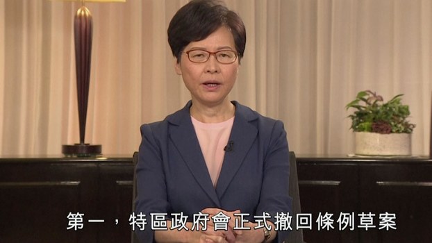 林鄭月娥在記者會正式宣佈撤回《逃犯條例》