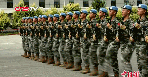 雖被稱為“中國藍盔”,但維和部隊方陣裏,同樣有着不可缺少的“中國紅”元素。