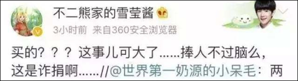 在包括滿雪瑩(ID:“不二熊家的雪瑩醬”)等諸多網友的轉發留言下,“詐捐”的説法愈傳愈遠。