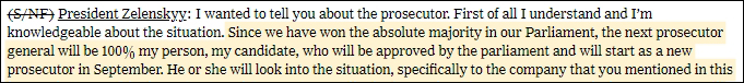 而在週三的會面中,澤連斯基又改口稱,烏克蘭是個“獨立的國家,有獨立的檢察系統”,自己“沒有要求或者施壓新任總檢察長”。