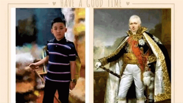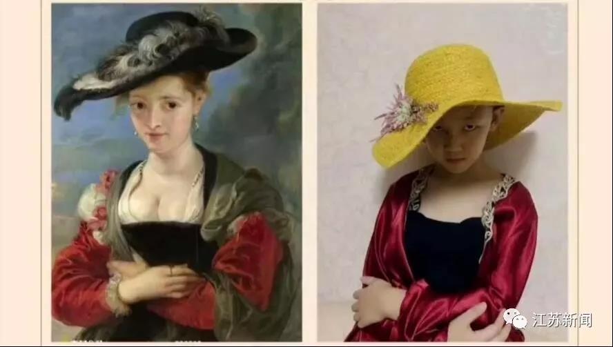 這幅畫的模仿者叫李域涵,他告訴記者,為了做好頭上花環和花團錦簇的背景,爸爸媽媽也是腦洞大開。