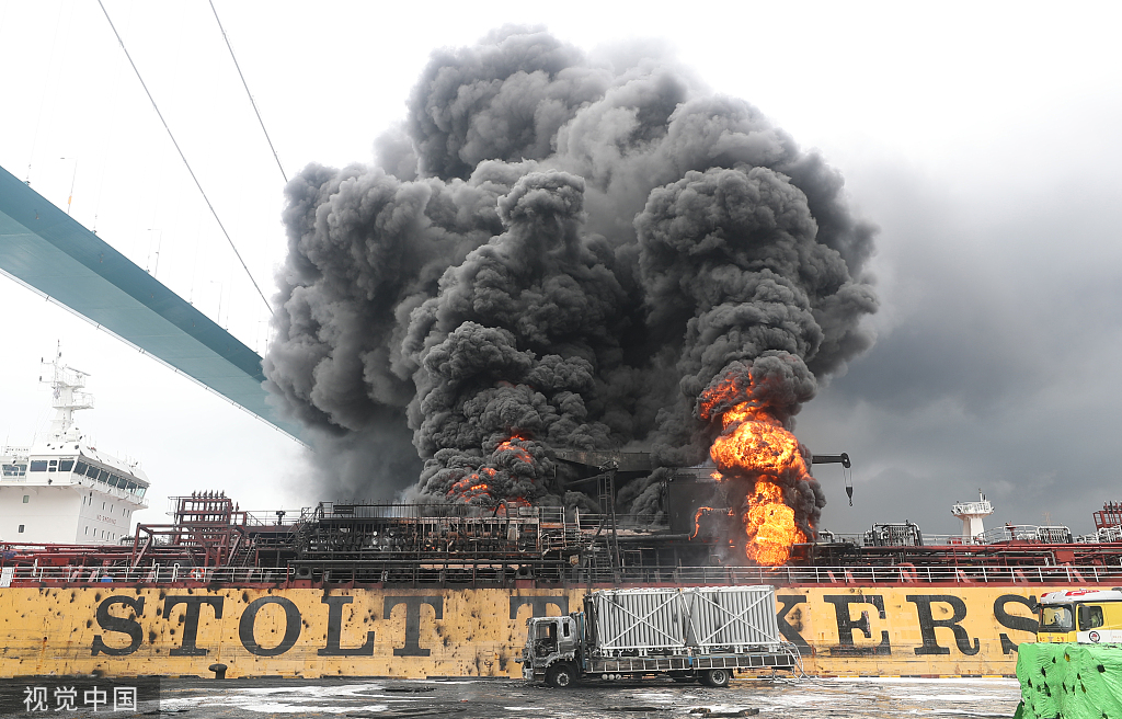 報道稱,火勢還蔓延到了旁邊一艘油輪上,當中有21名船員。為避免進一步發生爆炸,警方已將區域封鎖。目前當局正調查事故原因。