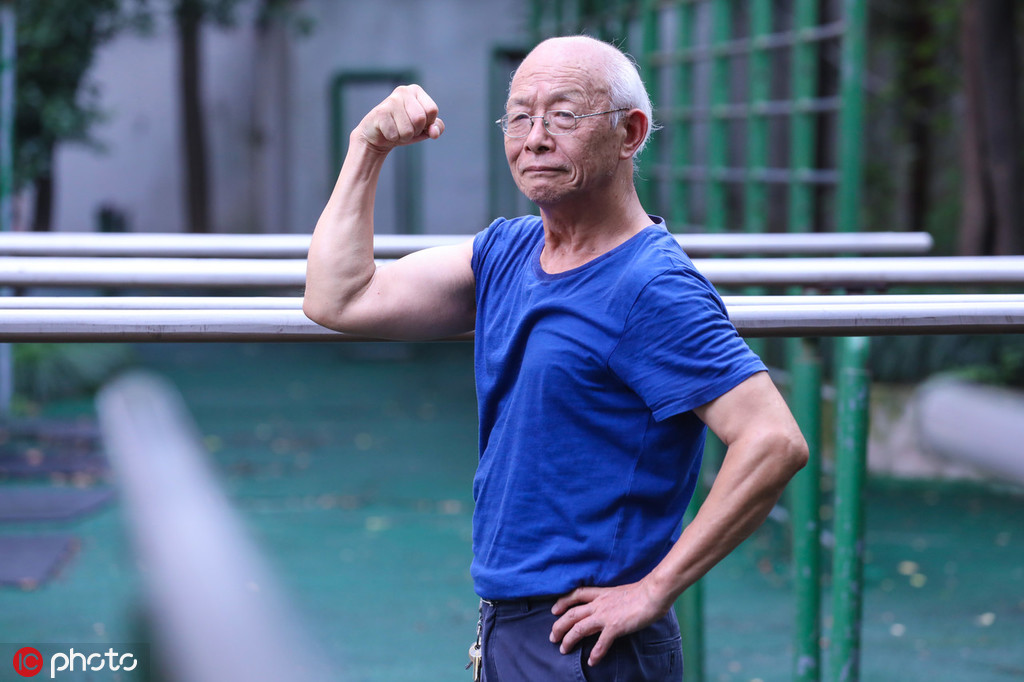晨練中的80歲退休教師應守巖,我國居民的人均預期壽命已從35歲提升至77歲