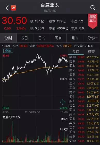 9月30日才正式登陸港交所的百威亞太,國慶以來連續創新高,累計漲幅達到近13%,總市值突破了4000億港元。